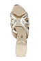Light Gold Faux Leather Crystal Embroidered Wedges