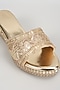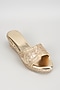 Light Gold Faux Leather Sequins Embroidered Wedges