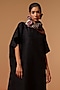 Featuring a black kaftan-style dress in crushed silk base with straight neckline. Accentuate it with statement earrings and flats for a casual chic look.