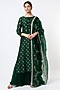 Featuring a green banarasi bandhani kurta in pure silk base with hand embroidery. It is paired with matching flared palazzo pants in satin organza base and an organza dupatta.