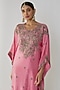 Punchy Pink Pure Silk Hand Embellished Kaftan Set