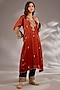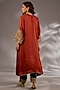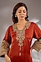 Featuring a rust orange A-line kurta in satin organza base with dori hand embroidery. It is paired with pants. Accentuate it with statement earrings and heels for a festive ceremony.