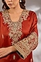 Rust Orange Satin Organza Dori Embroidered A-Line Kurta Set