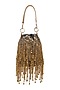Featuring a blue and gold potli bag in metal, leather, and cotton base with beads embellishments and chain hangings.