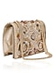 Featuring a gold clutch bag made of pure leather embellished with gold and silver flower motifs and tiny sequins all over. It has a suspended sling chain.