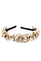 Featuring a golden woven broad hairband with sequins and metallic floral motifs highlighted with crystal stone and zircons in the centre.