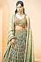 Featuring a blue lehenga in silk base with digital print. It is paired with a blouse having resham, sequins and mirror hand work, including a dupatta. Perfect for an engagement or sangeet ceremony.