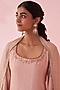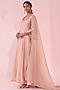 Featuring a blush pink anarkali in chanderi and organza base with hand and machine embroidery. It is paired with pants and a dupatta. Accentuate it with statement earrings and heels for a festive occasion or pooja ceremony.