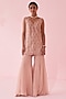 Featuring a blush pink kurta in organza base with hand and machine embroidery. It is paired with flared sharara pants. Accentuate it with statement earrings and heels for a festive occasion or sangeet ceremony.