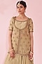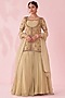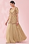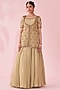 Featuring a green lehenga in chanderi and organza lurex base. It is paired with a choli, a sheer dupatta and a jacket having resham, zari, badla and dori hand embroidery. Accentuate it with kundan polki jewellery and heels for festive occasions or sangeet ceremony.