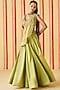 Featuring a green lehenga in chanderi and organza base. It is paired with a blouse having resham, dori, aari and zardosi work, including a dupatta. Accentuate it with kundan polki jewellery and block heels for a wedding or mehendi ceremony.