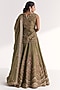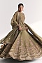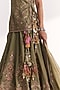 Featuring a green lehenga in raw silk, dola silk and organza base with embroidery. It is paired with a bustier, a hand embroidered jacket and a dupatta. Accentuate it with kundan polki jewellery and embellished heels for weddings or mehendi ceremony.