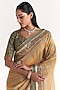 Featuring a green saree in tissue and dola silk base with hand embroidery. It is paired with a blouse. Accentuate it with gold earrings and wedges for a stylish ensemble, ideal for wedding or mehendi ceremonies.