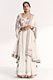 Featuring an ivory anarkali in georgette sequins, organza and dola silk base with hand embroidery and lampi work. It is paired with a dupatta. Accentuate it with kundan polki jewellery and embellished heels for weddings or a festive ceremony.