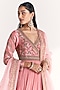 Featuring a light pink anarkali in georgette and dola silk base with hand and machine embroidery. It is paired with an organza dupatta. Accentuate it with kundan polki jewellery and embellished heels for weddings or a festive ceremony.
