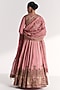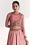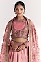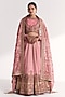 Featuring a light pink lehenga in raw silk, georgette and dola silk base with lotus motif hand embroidery. It is paired with an embroidered blouse, a koti and an organza dupatta. Accentuate it with kundan polki jewellery and embellished heels for weddings or sangeet ceremony.