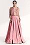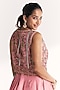 Featuring a light pink lehenga in tissue, raw silk and dola silk base with gota and hand work. It is paired with a bustier and a mirror hand embroidered koti. Accentuate it with kundan polki jewellery and embellished heels for weddings or sangeet ceremony.