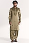 Green Linen Satin Dori Embroidered Pathani Kurta Set