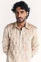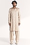 Ivory Linen Satin Dori Embroidered Pathani Kurta Set