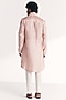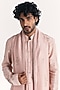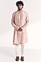 Featuring a light pink kurta in chanderi base with hand embroidery. It is paired with ivory pants and a stole. Style it up with mojaris for a festive occasion, wedding or engagement ceremony.