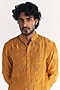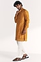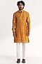 Featuring a mustard kurta in chanderi base with hand embroidery. It is paired with pants. Style it up with mojaris for a festive occasion, wedding, haldi or engagement ceremony.