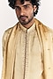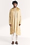 Featuring a yellow kurta in chanderi base with hand embroidery. It is paired with ivory pants and a stole. Style it up with mojaris for a festive occasion, wedding or engagement ceremony.