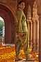Featuring a mint green shirt in chanderi silk base with embroidery and tie-dye detail. It is paired with dhoti pants. Accentuate it with dangler earrings and heels for a complete look.