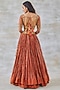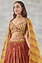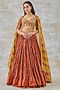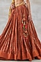 Featuring an orange lehenga in crinkled lurex base with latkans. It is paired with a rust colored blouse having gota patti and sequins hand embroidery, including a printed organza dupatta. Perfect for festive occasions.