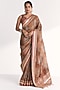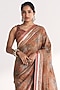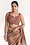 Featuring an orange saree in tissue and dola silk base with hand embroidery and print. It is paired with a hand embroidered blouse. Accentuate it with gold earrings and wedges for a stylish ensemble, ideal for wedding or festive ceremonies.