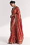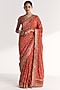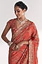 Featuring a tangerine handcrafted saree in crepe and raw silk base with floral and sequins handwork. It is paired with a blouse. Accentuate it with gold earrings and wedges for a stylish ensemble, ideal for wedding ceremonies or festive gatherings.