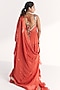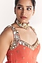 Featuring a tangerine anarkali in georgette sequins base with mirror embroidery. It is paired with a ruffled dupatta. Accentuate it with kundan polki jewellery and embellished heels for weddings or a festive ceremony.