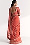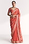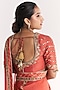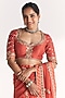 Featuring a tangerine saree in organza base with gota and floral hand embroidery. It is paired with a raw silk blouse having floral and mirror work. Accentuate it with gold earrings and wedges for a stylish ensemble, ideal for wedding ceremonies or festive gatherings.