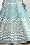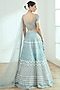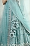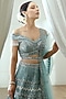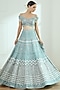 Featuring a frosty blue lehenga in organza base with sequins and mirror embroidery. It is paired with a matching off-shoulder blouse a net dupatta.
