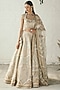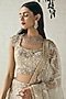 Featuring a gold and copper lehenga in organza base with sequins and gota patti hand embroidery. It is paired with a matching zardosi embroidered blouse and a net dupatta having chevron print.
