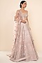 Featuring an ice pink lehenga in organza base with foil and hand embroidery. It is paired with a matching blouse and a net dupatta.