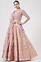 Featuring an icy pink lehenga in organza base with foil embroidery. It is paired with a matching blouse having beadwork and a dupatta.