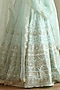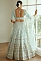 Featuring a sky blue green lehenga in raw silk base with sequins embroidery. It is paired with a matching blouse having beaded booti work and a net dupatta.