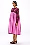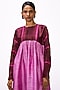 Featuring a carmine dress in handwoven silk base with color blocking and shibori stripe detail. Accentuate it with statement earrings and wedges for a festive or an evening look.