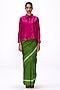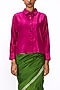 Featuring a magenta shirt blouse in silk base with multi-colored buttons. Accentuate it with pants, statement earrings and flats for a casual or an evening look.