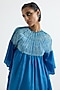 Featuring a methyl blue kaftan in silk base with shibori neckline, gota, beads and hand-stitched detail. Accentuate it with statement earrings and metallic heels for festive ceremonies or elegant evening events.