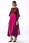 Featuring a wine color blocked kaftan in handwoven silk base with shibori detail. Accentuate it with statement earrings and wedges for a festive ceremony or family gatherings.