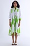 Featuring a white and green midi dress in cotton base with front pleats, cuffed sleeves, a shirt collar and floral print.