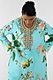 Blue Cotton Slub Hand Embroidered & Floral Printed Kurta Set