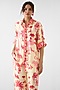 Featuring a cream crop shirt in vegan silk base with print and contrast border placket. It is paired with trousers having pockets. Accentuate it with hoop earrings and strappy heels for brunches, sundowner, vacation outings summer dates.