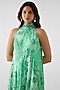 Featuring a green halter dress in vegan silk base with paisley print and back hook closure. Accentuate it with hoop earrings and strappy heels for brunches, sundowner, vacation outings summer dates.