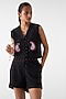 Featuring a midnight blue sleeveless vest in viscose linen base with a v-neckline, a front opening and a structured silhouette, including beads, knots and patch hand embroidery. It is paired with shorts having front button and lace detail. Accentuate it with hoop earrings and block heels for brunches, sundowner, vacation outings summer dates.