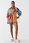 Featuring a multi-colored shirt in cotton slub base with hand paint. It is paired with shorts having a front zipper and pockets. Accentuate it with hoop earrings and block heels for brunches, sundowner, vacation outings summer dates.