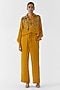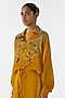 Featuring a mustard cropped shirt in vegan silk base with placement digital print, embroidered collar and a waist drawstring. It is paired with pants. Style it with statement earrings and block heels, perfect for festive gatherings.