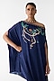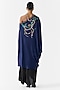 Featuring a navy draped asymmetric dress in vegan silk base with placement digital print and lace hand embroidery. It is paired with a knotted skirt. Style it with statement earrings and block heels, perfect for festive gatherings.