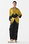 Featuring an olive green and black hand-dyed shirt dress in vegan silk base with dropped sleeves and swarovski detail. Style it with dangler earrings and heels for evening soirees or date nights.